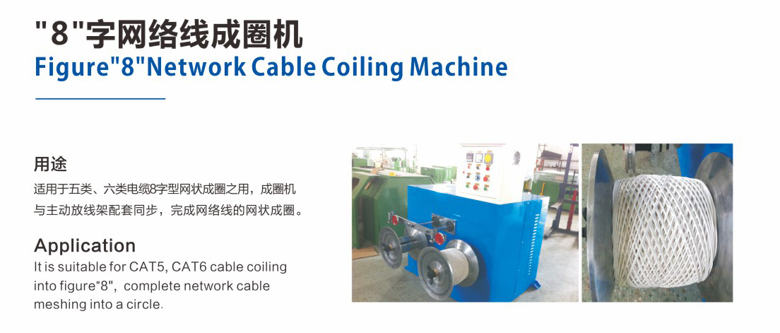 適用于五類(lèi)、六類(lèi)電纜8字型網(wǎng)狀成圈之用,成圈機(jī)與主動(dòng)放線架配套同步,完成網(wǎng)絡(luò)線的網(wǎng)狀成圈。